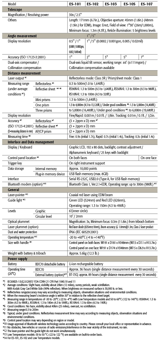 - ES-101 and ES-102 feature angle measuring accuracy of 1” equipped with groundbreaking technology for extremely reliable angle measurement.